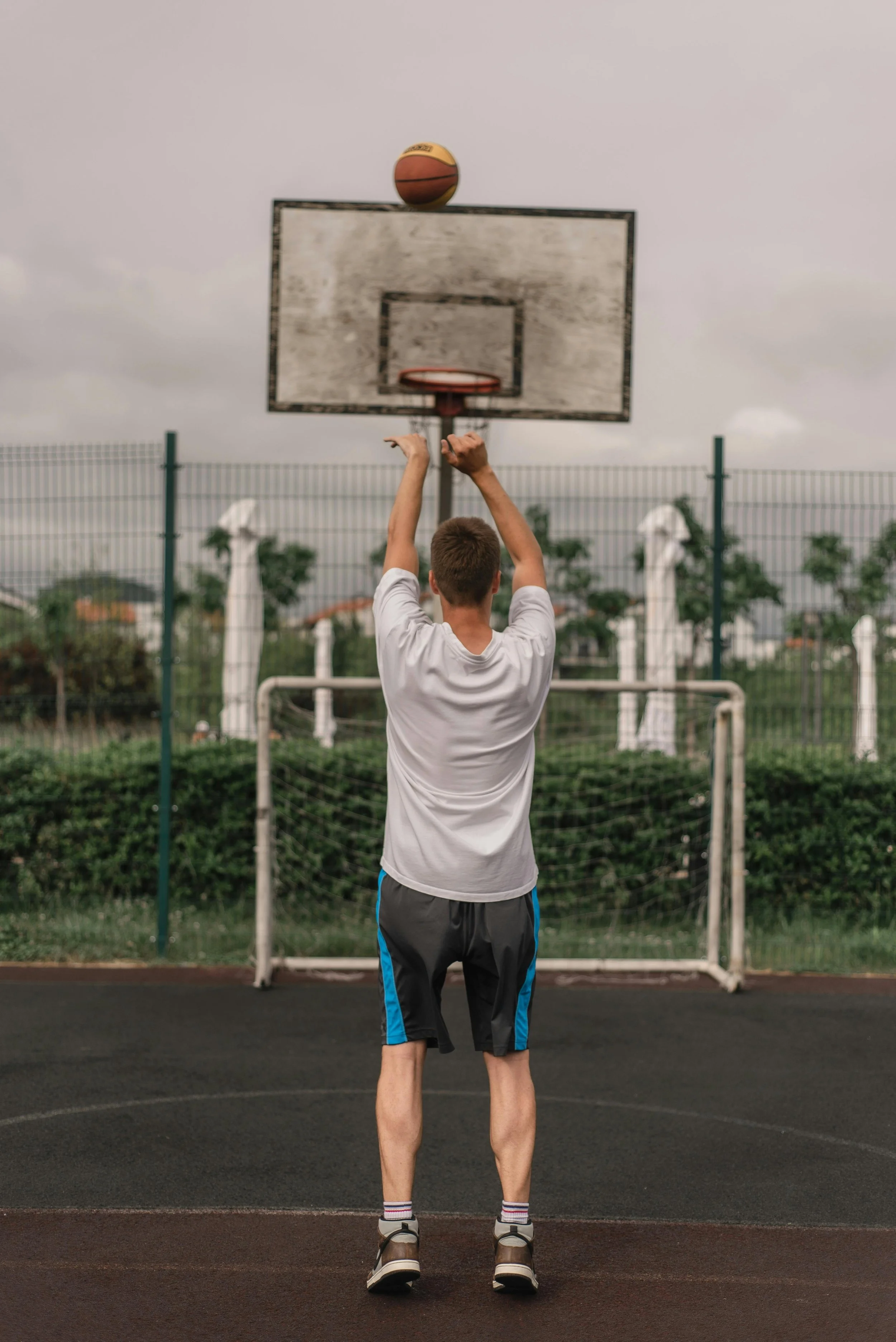 “Nice shot,” he said. He took another few steps forward, retrieved the ball, and passed it back to me. I mumbled thanks and shot again. I missed. The miss took a second to register. That should have gone in, I thought.